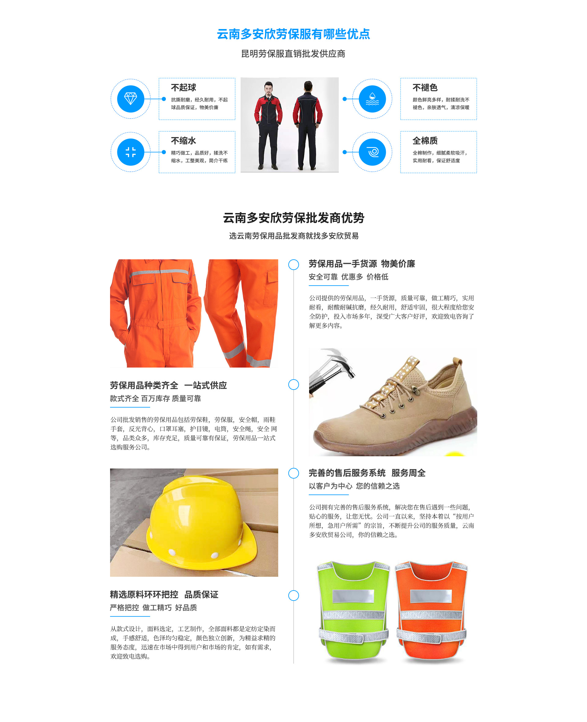 云南多安欣貿易有限公司位于云南省昆明市官渡區(qū)昌宏路東聚五金建材市場東區(qū)10-10。云南多安欣貿易有限公司是一家集生產。銷售、批發(fā)為一體的大型勞保用品單位。公司成立18年有余,在這18年里我們憑借我們行業(yè)知識,認真的態(tài)度和售后服務,在云南市場迅速崛起,同時代理銷售國內外各優(yōu)良廠商(普通、特種)勞動防護用品。安全防護用品,公司現(xiàn)有員工15人,公司一直以來,堅持本著以“按用戶所想,急用戶所需”的宗旨,從款式設計,面料選定,工藝制作,為精益求精的服務態(tài)度,迅速在市場中得到用戶和市場的肯定,公司經營品種達到一萬余種,包含了勞保用品的各個系列,如定制工裝、頭部防護,呼吸防護,勞保鞋,電力物資雨衣類眼臉部位防護,3m系列,墜落安全防護,交通安全設施電筒類多功能防護服、防塵防毒。耐酸堿。耐油,耐高溫,防寒,阻燃,隔熱,氣體監(jiān)測,絕緣防靜電,防砸高空墜落,救護,逃生,等特種勞保用品,如(彩條布,吊帶軟梯噸袋安全帽,...